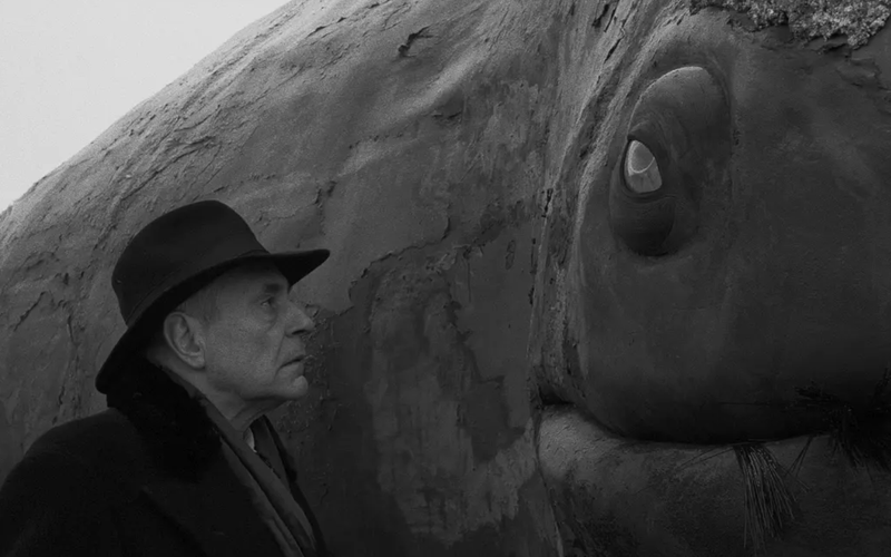 黑白屏幕上,隨著酒館老板的一聲咆哮,醉酒中模擬著行星原地轉(zhuǎn)圈的人們停止了運(yùn)動(dòng),名為《瓦盧什卡》的鋼琴主題曲響起,主人公走入黑暗的街道,漫長(zhǎng)的鏡頭,仿佛那個(gè)人們自以為了解但其實(shí)一無(wú)所知的宇宙終于敞開(kāi)了它真實(shí)的縫隙——這是塔爾·貝拉電影《鯨魚(yú)馬戲團(tuán)》的開(kāi)場(chǎng)。這個(gè)開(kāi)場(chǎng)可以說(shuō)直接抓住了小說(shuō)原著《反抗的憂郁》里的精神內(nèi)核,直接將故事的內(nèi)在氣質(zhì)呈現(xiàn)出來(lái),但是克拉斯諾霍爾卡伊·拉斯洛的敘事需要通過(guò)與鏡頭不同的方式來(lái)完成這個(gè)故事精神的講述,因此它的開(kāi)場(chǎng)與電影完全不同??死怪Z霍爾卡伊·拉斯洛的小說(shuō),從《撒旦探戈》到《鯨魚(yú)馬戲團(tuán)》,都被塔爾·貝拉改編成了電影,兩個(gè)重量級(jí)的藝術(shù)家用兩種形式講述著相同的故事,一個(gè)用長(zhǎng)鏡頭,一個(gè)用長(zhǎng)句子和不分段的長(zhǎng)章節(jié),共同構(gòu)成了一個(gè)深邃如黑洞的雙生宇宙,可惜的是如今這兩人已經(jīng)類似分道揚(yáng)鑣,畢竟文學(xué)和電影作為兩種不同的表現(xiàn)形式,其追求的終極目標(biāo)也不相同。