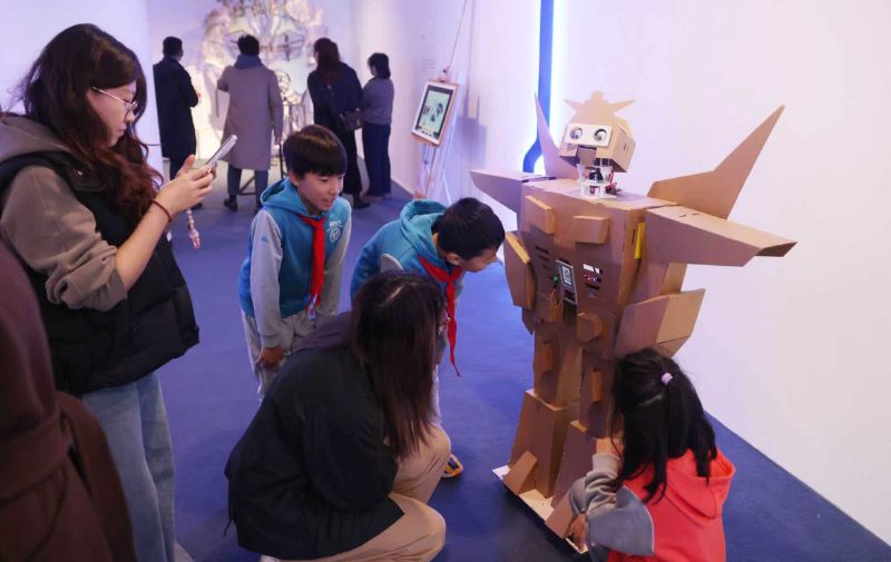 10月24日,以“智繪未來:多維視角下的全域人工智能之城”為主題的第五屆“大都東南”科技藝術(shù)展在北京智慧融媒創(chuàng)新中心拉開帷幕。本屆展覽延續(xù)“藝術(shù)融合硬核科技”的特色,將產(chǎn)業(yè)成果轉(zhuǎn)化為可觸摸、可互動(dòng)的文化場(chǎng)景。圖為觀眾感受數(shù)字互動(dòng)式體驗(yàn)作品。